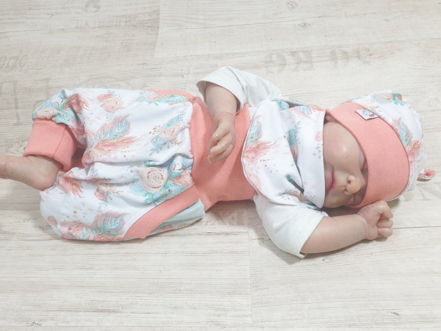 Coole Pumphose oder Babyset kurz und lang Federn Aquarell Apricot 25 von Atelier MiaMia