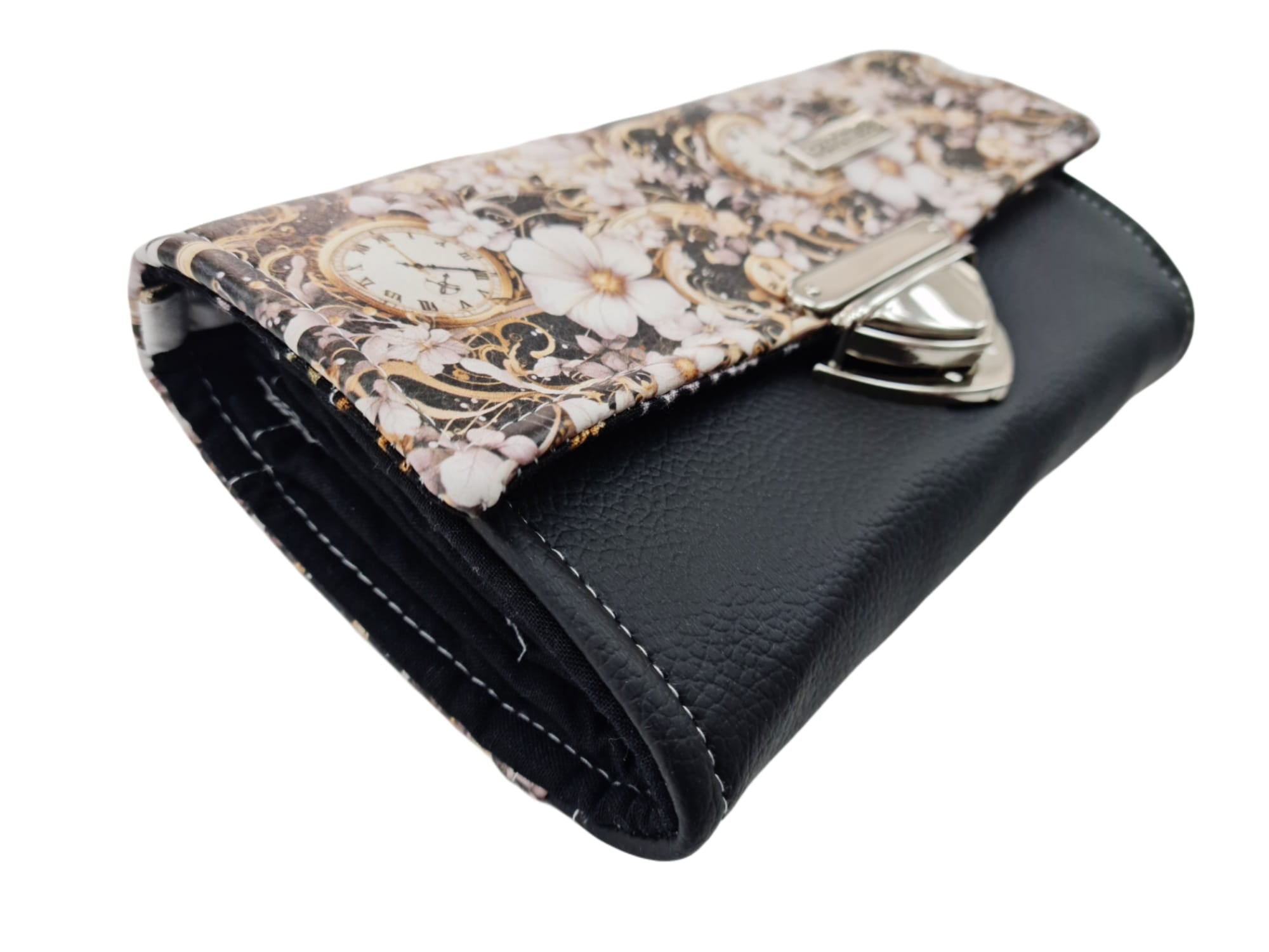 Geldbörse Uhren Blumen schwarz von Atelier MiaMia