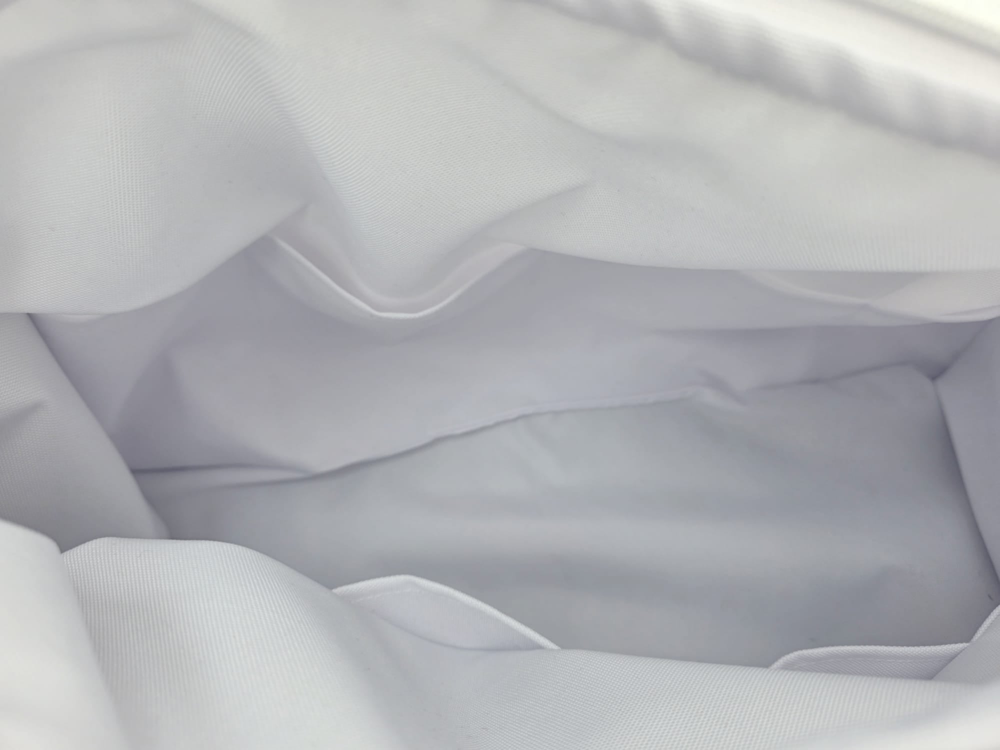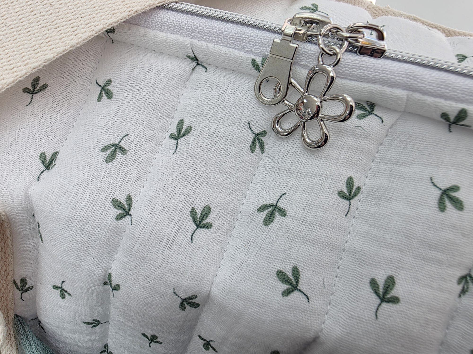 Gefertigt aus hochwertigem, handabgestepptem Musselin überzeugt die Tasche durch ihre weiche Haptik und edle Optik. Im Inneren sorgt ein wasserdichter Canvas-Stoff dafür, dass alles sauber und geschützt bleibt – ideal für unterwegs.