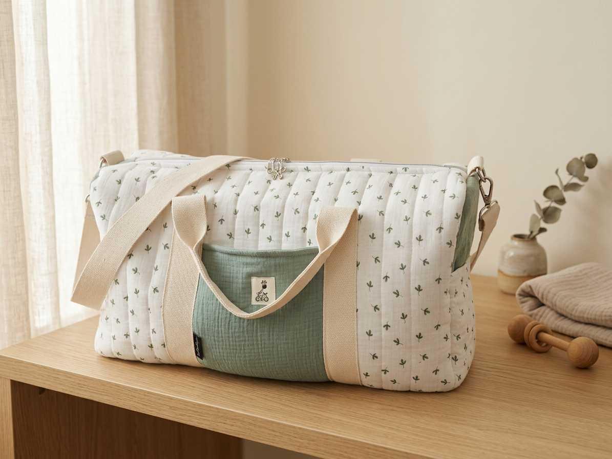 Wickeltasche Musselin Handmade – Große Mom Bag / Boston Bag – Wasserdicht Innen – Baby Wickeltasche mit Tragegurt – Stilvolle Mama Tasche