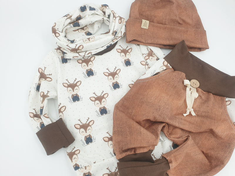 Hoodie Pullover kleiner Hirsch, Baby Kind ab 44-122 kurz oder langarm Designer Limitiert !! von Atelier MiaMia