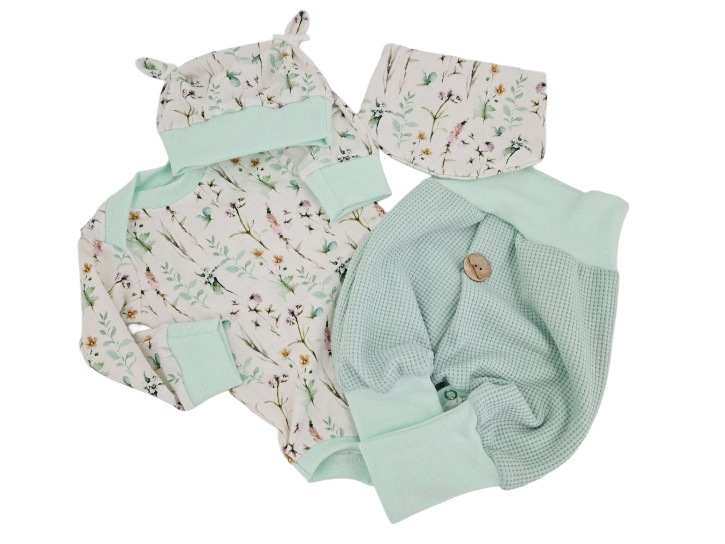 Mitwachs-Body | Babyset Blumen Muster – kurz & lang bis Gr. 98 | Handmade