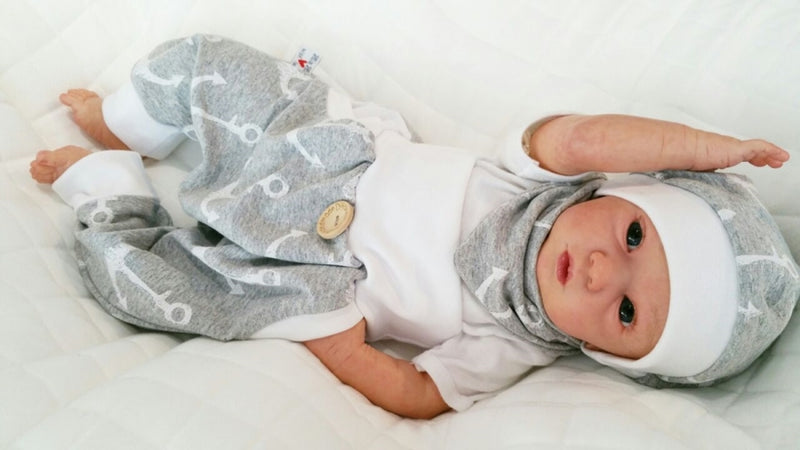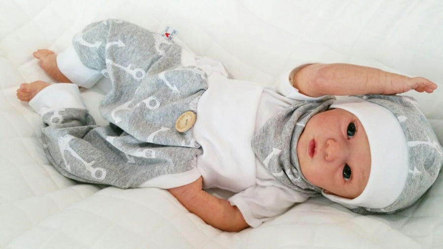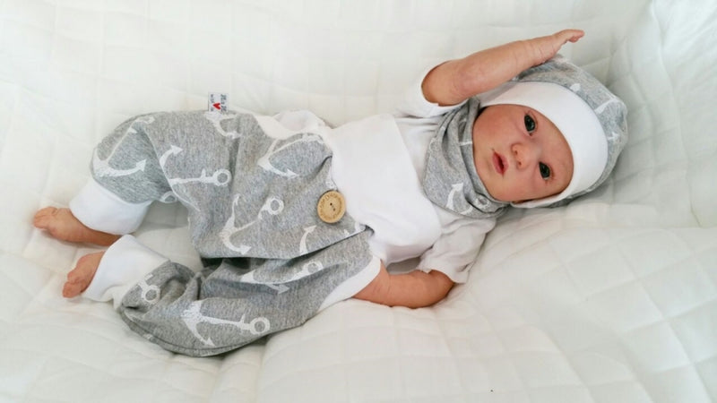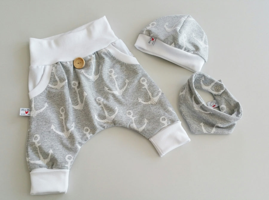 Atelier MiaMia Cool bloomers or baby set short and long Grau Weisse Anker 73